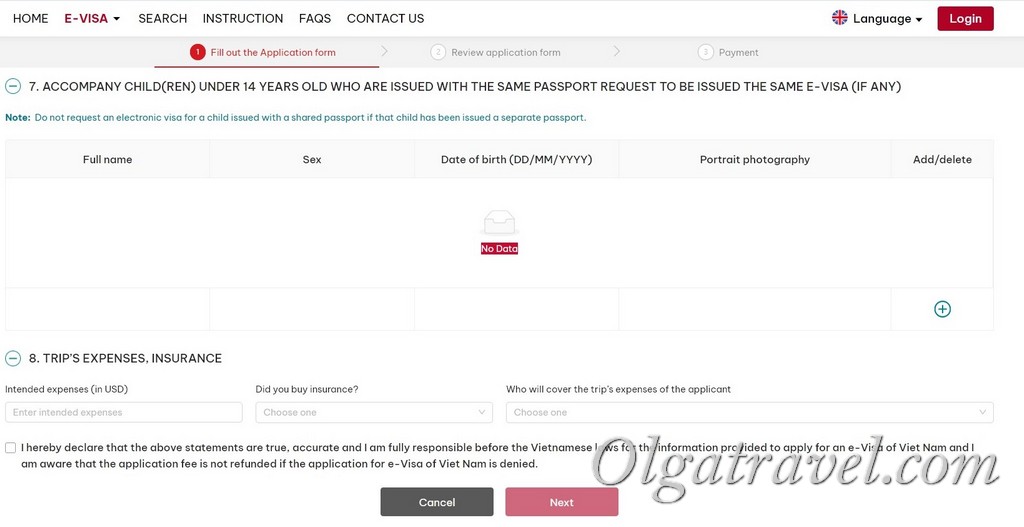 Указать детей, если они вписаны в ваш паспорт. Если у ребенка отдельный паспорт для него заполняется отдельная заявка на визу во Вьетнам.