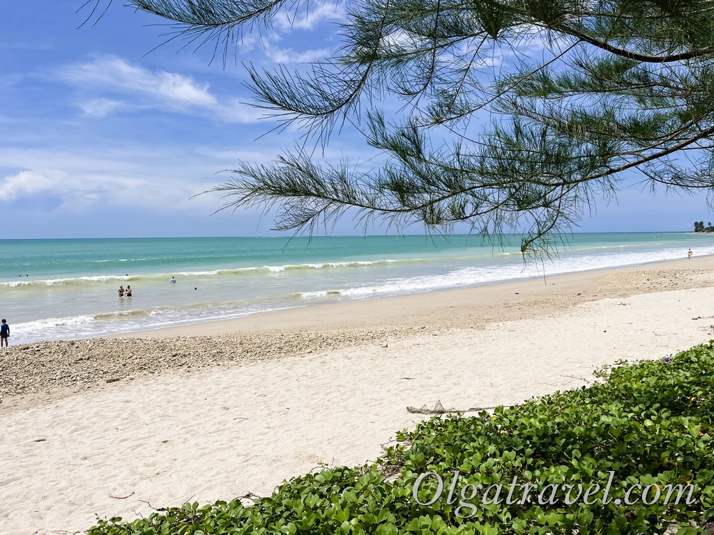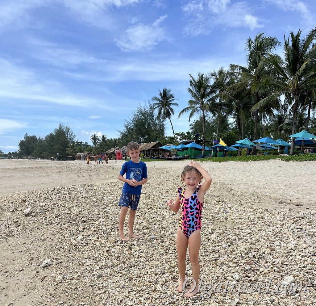 Заход в воду в этом месте очень плавный, песок белый, много мелких камушков и ракушек. По берегу можно дойти до Le Méridien Khao Lak Resort & Spa (классный отель, рекомендую! Мы ездим в него часто) и до Graceland Khao Lak Beach Resort (тут когда-то, в пандемию, мы отдыхали на Новый год).