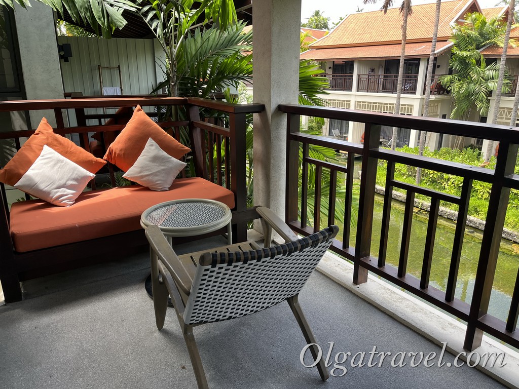 Я бронировала номер Deluxe. Наш номер был в третьем от моря корпусе на втором этаже. Номер красивый, классный балкон с диванчиком, на котором приятно проводить время.